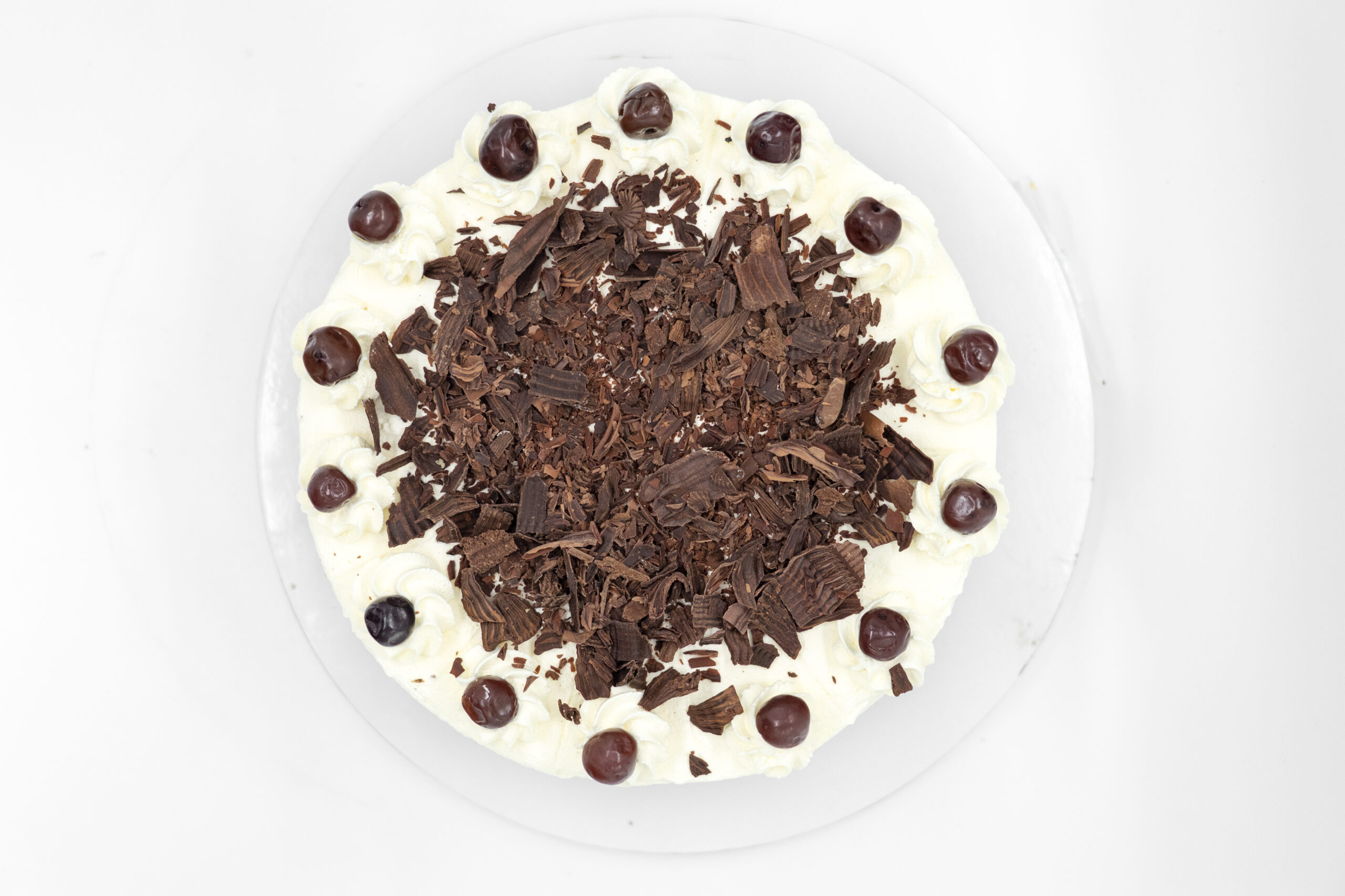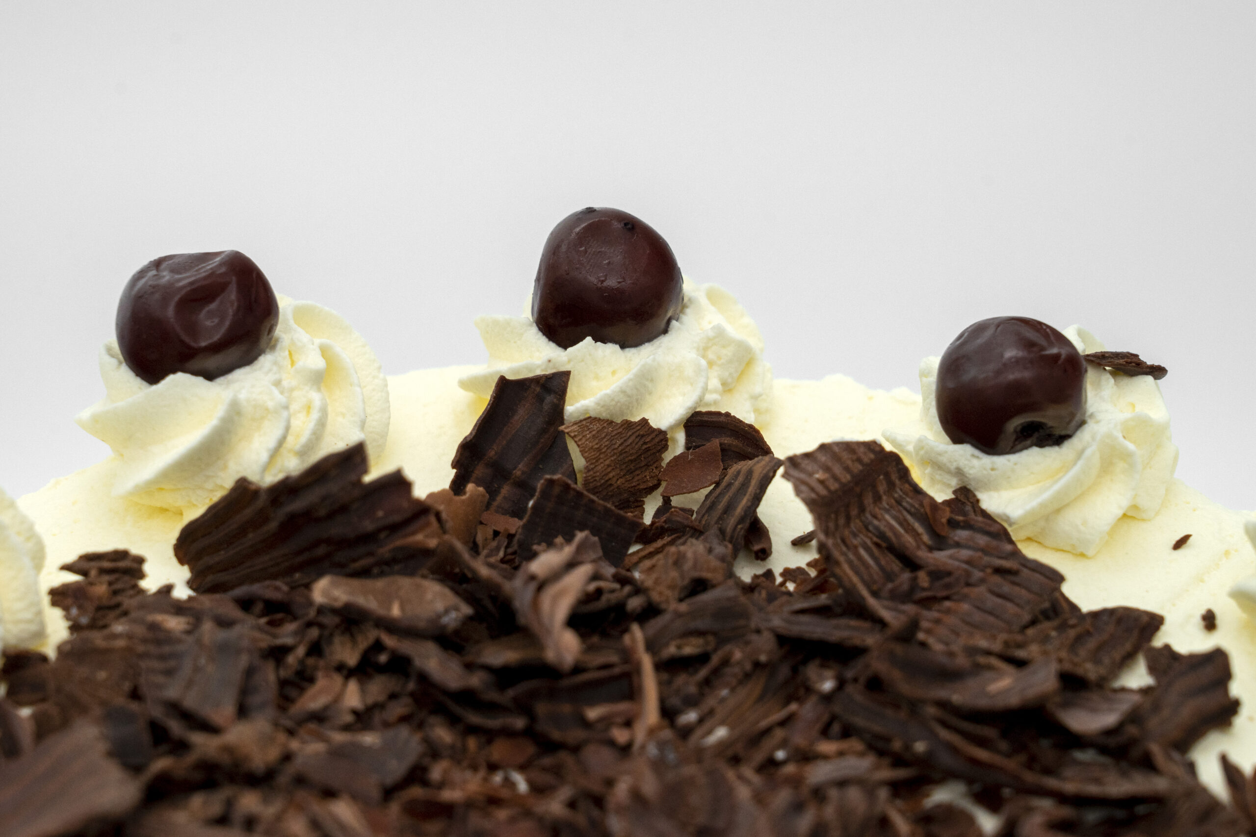 Der Klassiker aus dem Schwarzwald! Mit fruchtigen Kirschen mit Schuss, frischer Oberscreme, schokoladigen Schokoraspeln!
